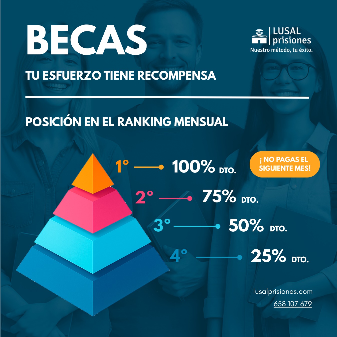 · ¡TU PREPARACIÓN PUEDE SALIRTE GRATIS! Si eres el mejor alumn@ del mes, la cuota del mes siguiente te saldrá GRATIS.